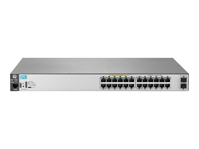 HPE Aruba 2530-24G-PoE+-2SFP+ - Switch - Administrerad - 24 x 10/100/1000 (PoE+) + 2 x 10 Gigabit SFP+ - skrivbordsmodell, rackmonterbar, väggmonterbar - PoE+ (195 W) J9854A#ABB
