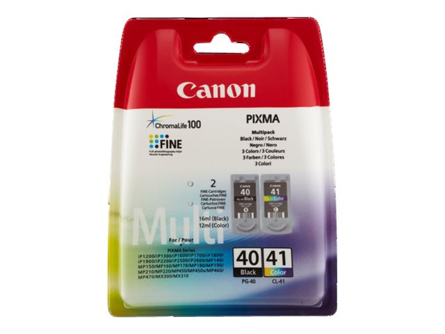 Canon PG-40 / CL-41 Multi Pack - 2-pack - svart, färg (cyan, magenta, gul) - original - bläcktank - för FAX JX210; PIXMA iP1800, iP1900, iP2600, MP140, MP190, MP210, MP220, MP470, MX300, MX310
