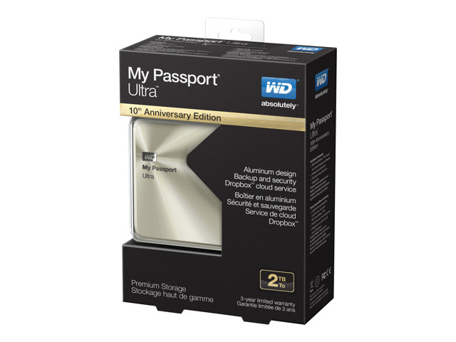 WD My Passport Ultra WDBEZW0020BCG - Anniversary Edition - hårddisk - krypterat - 2 TB - extern (portabel) - USB 3.0 - guld WDBEZW0020BCG-EESN