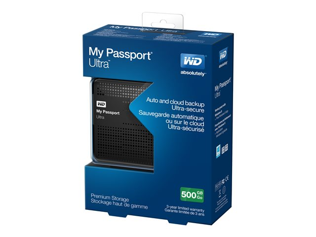 WD My Passport Ultra WDBPGC5000ABK - Hårddisk - krypterat - 500 GB - extern (portabel) - USB 3.0 - svart