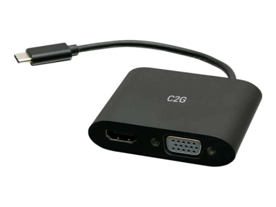 C2G USB C to HDMI & VGA Dual Monitor Adapter - 4K 30Hz - Black - Videokort - 24 pin USB-C hane till HDMI, HD-15 (VGA) hona - svart - 4K30Hz stöd