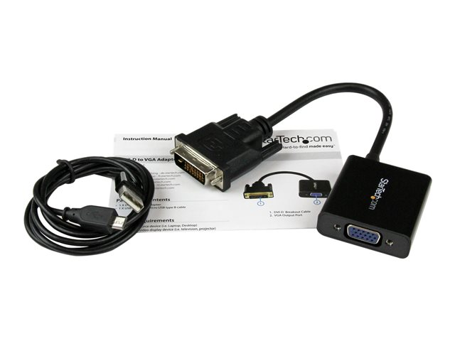 StarTech.com Aktiv DVI-D till VGA-kabeladapter - 1920x1200 - Videokort - DVI-D, Mikro-USB typ B (endast ström) till HD-15 (VGA) (hona) - 24.8 m - aktiv, 1920 x 1200 (WUXGA) stöd - svart DVI2VGAE