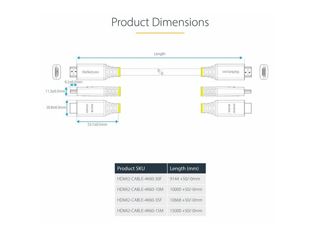 StarTech.com 10m (32.8ft) Active High Speed HDMI Cable, 4K60Hz - Hög hastighet - HDMI-kabel med Ethernet - HDMI hane till HDMI hane - 10 m - skärmad - svart - aktiv, 2K144Hz stöd, 4K60Hz UHD-stöd, HDR10-stöd HDMI2-CABLE-4K60-10M