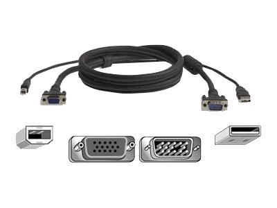 Belkin OmniView All-In-One Pro Series Plus - Video/USB-kabel - HD-15 (VGA), USB typ B till USB, HD-15 (VGA) (hane) - 1.8 m - formpressad - för P/N: F1DN102U, F1DN104U, F1DN108U