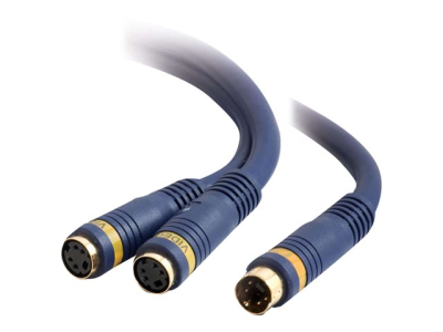 The Velocity S-video Y-cable from C2G is the solution for sending a single S-video signal to two devices. A dual coax design, this S-video cable transports the black-and-white picture detail information and the chrominance color information on separate pathways.