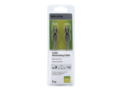 Belkin - Patch-kabel - RJ-45 (hane) till RJ-45 (hane) - 1 m - UTP - CAT 5e - formpressad, hakfri - grå