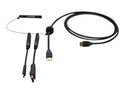 C2G 6ft (1.8m) 4K HDMI Premium Cable and Dongle Adapter Ring with Color Coded DisplayPort and USB-C - Videoadaptersats - svart - 4K60Hz stöd, 4K 30 Hz-stöd (DisplayPort), guldblinkade kontakter