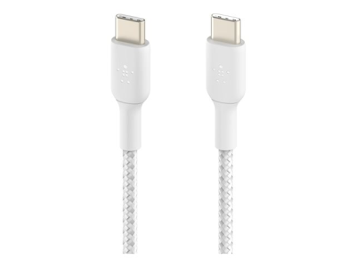 Belkin BoostCharge - USB-kabel - 24 pin USB-C (hane) till 24 pin USB-C (hane) - USB 2.0 - 3 A - 1 m - USB Power Delivery (60W) - vit (paket om 2)