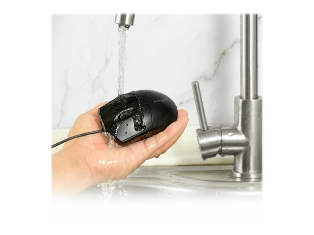 Pro Fit Wired Washable Mouse, med sin vattentäta, lätt att rengöra och robusta design, är det enkelt att upprätthålla en hygienisk yta utan att offra prestanda. Bekväm för användning med valfri hand och trådbunden USB-anslutningen ger den tillförlitlig prestanda utan behov av batterier. Plug-and-play, ingen mjukvara att ladda ner och installera. En perfekt följeslagare till Kensington Pro Fit Wired Washable Keyboard. Doppa inte USB-kontakten i vatten.