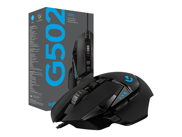 Logitech Gaming Mouse G502 (Hero) - Mus - optisk - 11 knappar - trådlös, kabelansluten - 2.4 GHz - trådlös USB-mottagare