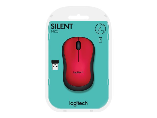 Logitech M220 Silent - Mus - optisk - 3 knappar - trådlös - 2.4 GHz - trådlös USB-mottagare - röd
