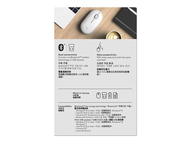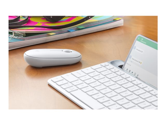 Logitech Pebble M350 - Mus - optisk - 3 knappar - trådlös - 2.4 GHz, Bluetooth - trådlös USB-mottagare - offwhite
