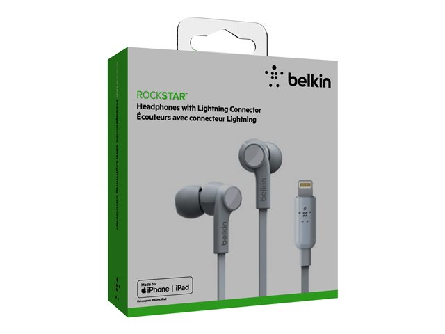 Belkin ROCKSTAR - Hörlurar med mikrofon - inuti örat - kabelansluten - Lightning - ljudisolerande - vit - för Apple 10.5-inch iPad Pro; iPad mini 4; iPhone 7, 7 Plus, 8, 8 Plus, X, XR, XS, XS Max G3H0001BTWHT
