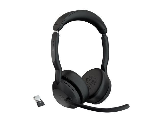 Jabra Evolve2 55 MS Stereo - Headset - på örat - Bluetooth - trådlös - aktiv brusradering - USB-A - svart - Zoomcertifierad, Certifierad för Microsoft-teams, Cisco Webex Certified, Optimerad för UC, Alcatel-Lucent-certifierad, Avaya-certifierad, Unify-certifierad, MFi-certifierad, Google Meet-certifierad, Amazon Chime-certifierad, Google Fast Pair-certifierad