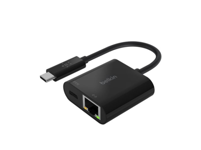 Belkin - Ethernet och laddningsadapter - USB-C - Gigabit Ethernet x 1 + USB-C (endast ström) x 1 INC001BTBK