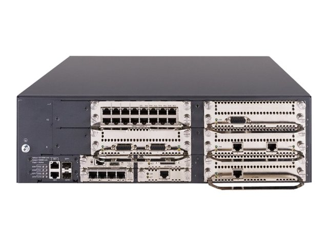 The H3C MSR 30-60 PoE multi-service router chassis offers secure, integrated and high-performance routing services on a single, full-featured, Power over Ethernet (PoE)-enabled platform. It offers optional embedded Voice Processing Modules (VPM) and Voice Co-Processing (VCPM) modules, which enable advanced voice processing for high-performance analog and digital voice services without compromising module or router performance.