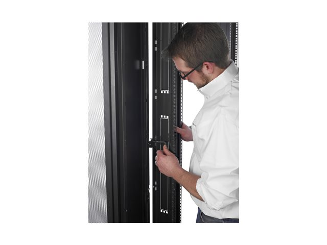 Bred, universell IT-kapsling med ökat antal alternativ för kabelhantering för intensivare server- och nätverkstillämpningar. Inkluderar integrerat monteringsutrymme för vertikal 1U i närheten av kapslingarnas standard EIA-310-utrustning för montering av u-platser som kan tas bort och ersättas med 1U-tillbehör av 42U-höjd för enkel passage genom dörröppningar.