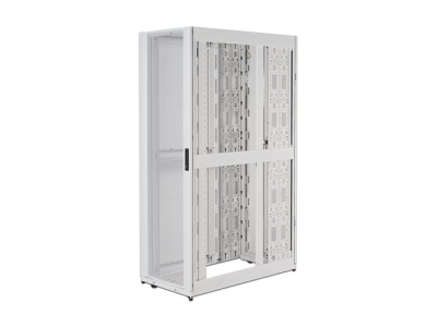 Flerfunktionellt rackskåp som optimerats för enkel installation, kabelhantering, integrerad strömdistribution och maximering av luftflöde.