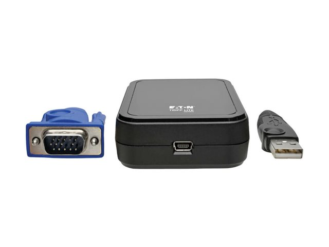 Eaton Tripp Lite KVM Console till USB 2.0 Portable Laptop Crash Cart Adapter revolutionerar sättet som IT-proffs hanterar och felsöker servrar och datorer. Med en högupplöst videoinspelningskapacitet på upp till 1920 x 1200 vid 60 Hz säkerställer den här adaptern att varje detalj syns, vilket gör det enklare att identifiera och lösa problem. Den USB-drivna designen eliminerar behovet av en extern strömkälla, vilket förenklar installation och användning i alla miljöer.