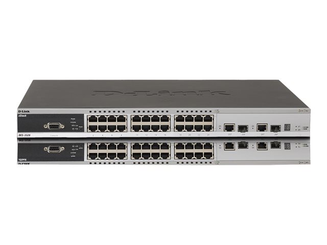 D-Link xStack DES-3528 - Switch - Administrerad - 24 x 10/100 + 2 x kombinations-Gigabit SFP + 2 x 10/100/1000 - skrivbordsmodell