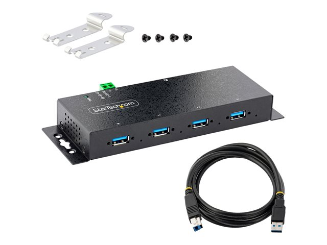 StarTech.com 4-Port Industrial USB 3.0 5Gbps Hub, Rugged USB Hub w/15kV Air/8kV Contact ESD and Surge Protection, DIN/Wall/Desk Mountable USB-A Hub, USB Expansion Hub with Locking Ports - Metal Construction (5G4AINDNP-USB-A-HUB) - Hubb - industriell - 4 x USB 3.2 Gen 1 - skrivbordsmodell, DIN-skenmonterbar, väggmonterbar