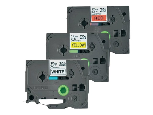 Brother TZe-31M3 - Svart på röd, svart på vitt, svart på gult - Rulle (1,2 cm x 8 m) 3 kassett(er) bandlaminat - för P-Touch PT-1000, 1010, 1080, 1090, 1280, 1830, 3600, 7500, 7600, 900, E100, E550, H100