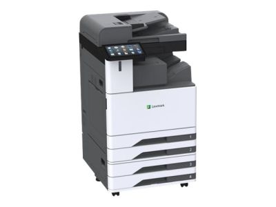 Lexmark CX943adxse multifunktionsskrivare SRA3+ färg är utformad för säkerhet, mångsidighet, prestanda för stora arbetsgrupper och hastigheter på upp till 55 sidor per minut. Modellen har funktioner som 25 cm pekskärm, dubbelsidig envägsskanning med ultraljudsdetektering av flera matningar, teckenigenkänning (OCR) och analog fax. Tillval av efterbehandling: häftning, hålslagarenhet, efterbehandlare för häften och Lexmarks första för tre-/Z-vikning. Inbyggda arbetsflödeslösningar, såsom Scan Center för enkel dokumentdirigering samt mjukvaror från tredjepart ger en mängd skannings- och utskriftsapplikationer som utökar dina affärsprocesser till skrivaren.