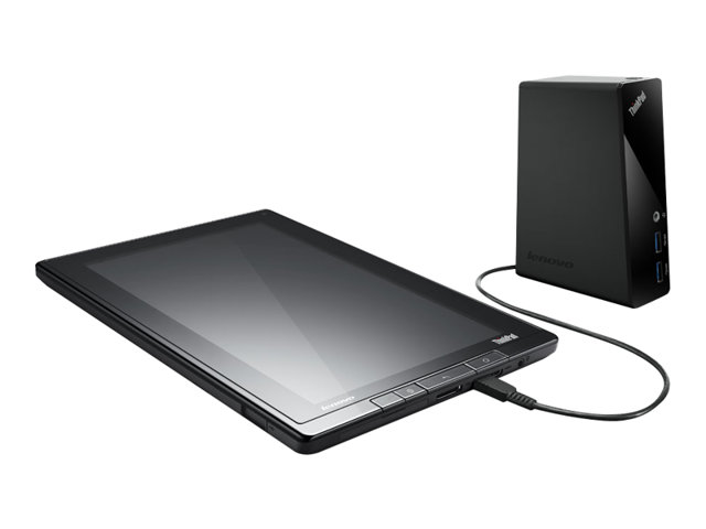 Transform any notebook into the heart of your office, instantly connecting mice, keyboards, printers, a monitor and mobile devices, all with a single cable using the ThinkPad Basic USB 3.0 Dock. It delivers the power of SuperSpeed USB 3.0 and high-performance HD video in one convenient, amazingly affordable docking station. The single cable connection saves you time on connectivity so you can dedicate more of your time to what you do best. Enjoy increased productivity at work and enhanced multimedia streaming at home, all powered by one docking station. The use of one single USB cable also reduces annoying cable clutter on your desk. This USB 3.0 dock offers up to 10 times the performance of USB 2.0-based docks for data and Internet connectivity. The ThinkPad Basic USB Dock also lets you charge a mobile device, even when your notebook is away. The dock comes with 2x USB 3.0 ports which are ideal for connecting memory keys, hard drives and other accessory devices. It also features 2x USB 2.0 ports for connecting all of your typical office peripherals such as printers and keyboards. It includes 1x Stereo/Mic Combo Audio Port, Gigabit Ethernet (10/100/1000) connectivity and a cable lock slot for physical security. There is a DVI slot on the rear of the docking station. DVI to VGA adapter included.